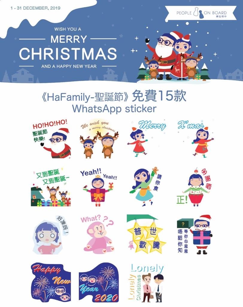 為咗同大家一齊慶祝聖誕節,POB青年設計師再次推出《HaFamily‧聖誕節》WhatsApp sticker 比大家! 免費15款貼圖 📱IPhone/Android 都用得架‼